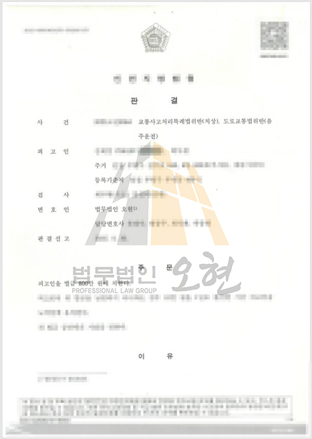 ÀÌ¿¡ µû¶ó ¹ý¿øÀº ÀÇ·ÚÀο¡°Ô ¹ú±Ý 800¸¸ ¿ø ¹× ¿îÀü¸éÇã Ãë¼Ò ¿ÜÀÇ Ãß°¡ÀûÀÎ Çü»çÁ¦Àç(½ÇÇü)¸¦ ºÎ°úÇÏÁö ¾Ê´Â ÆÇ°áÀ» ¼±°íÇÏ¿´½À´Ï´Ù.