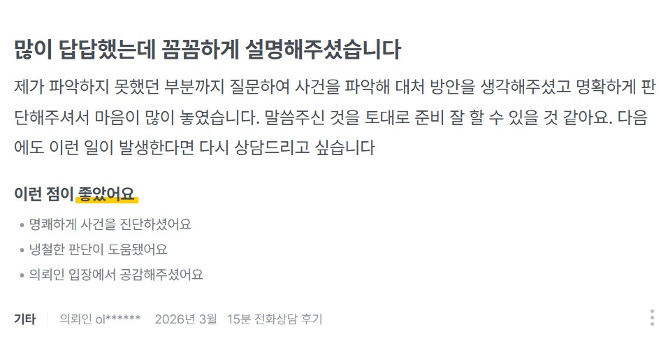 Á¦°¡ ÆÄ¾ÇÇÏÁö ¸øÇß´ø ºÎºÐ±îÁö Áú¹®ÇÏ¿© »ç°ÇÀ» ÆÄ¾ÇÇØ ´ëó ¹æ¾ÈÀ» »ý°¢ÇØÁÖ¼Ì°í ¸íÈ®ÇÏ°Ô ÆÇ´ÜÇØÁּż ¸¶À½ÀÌ ¸¹ÀÌ ³õ¿´½À´Ï´Ù. ¸»¾¸ÁֽаÍÀ» Åä´ë·Î Áغñ Àß ÇÒ ¼ö ÀÖÀ» °Í °°¾Æ¿ä. ´ÙÀ½¿¡µµ ÀÌ·± ÀÏÀÌ ¹ß»ýÇÑ´Ù¸é ´Ù½Ã »ó´ãµå¸®°í ½Í½À´Ï´Ù